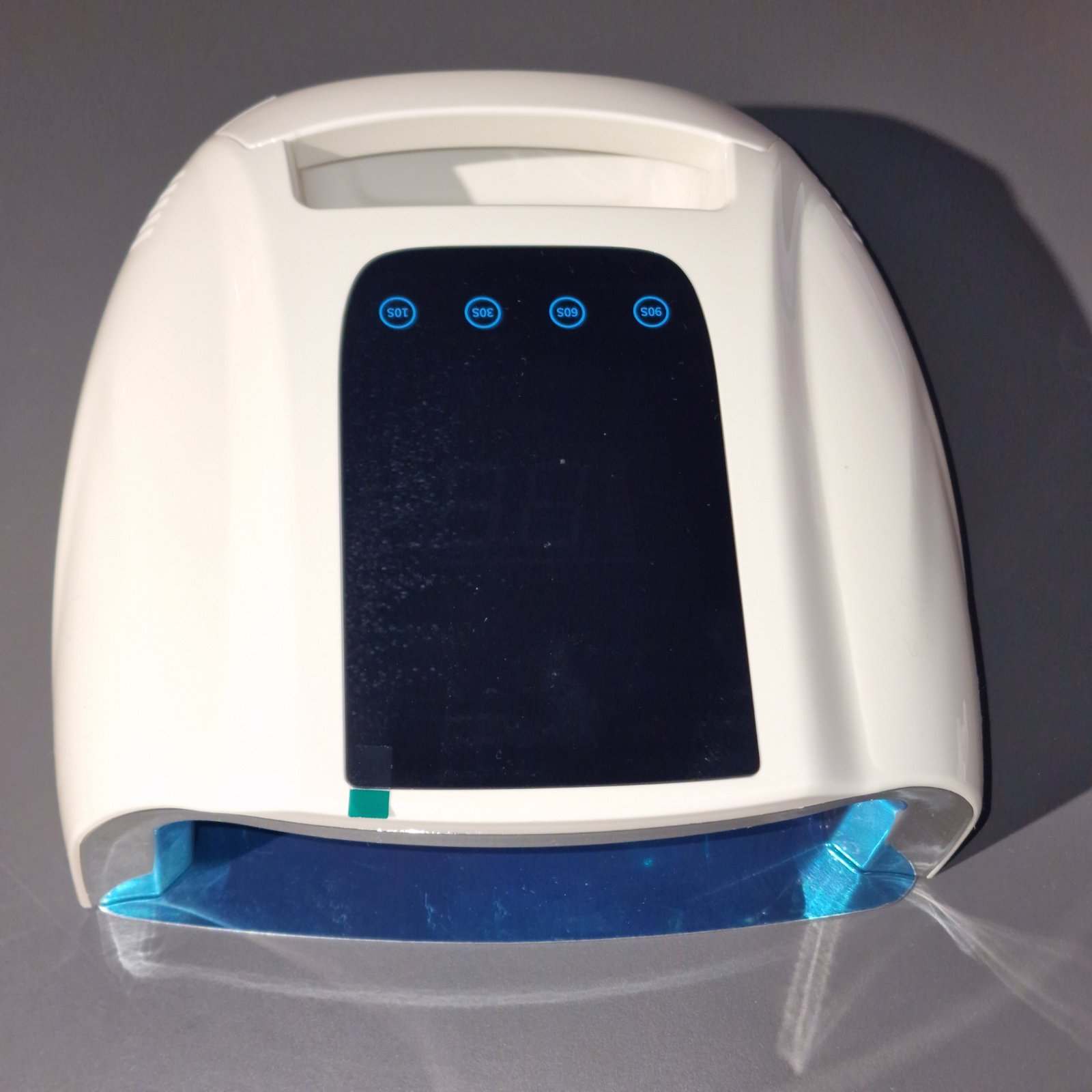 O lampă duală UV/LED pentru manichiură și pedichiură, concepută pentru polimerizarea ojelor hibride, gelurilor și gelurilor acrilice, cu baterie încorporată (poate fi funcționată fără o sursă de alimentare permanentă). Are o bază detașabilă în formă de oglindă, fiind potrivită pentru diverse tipuri de lucrări.